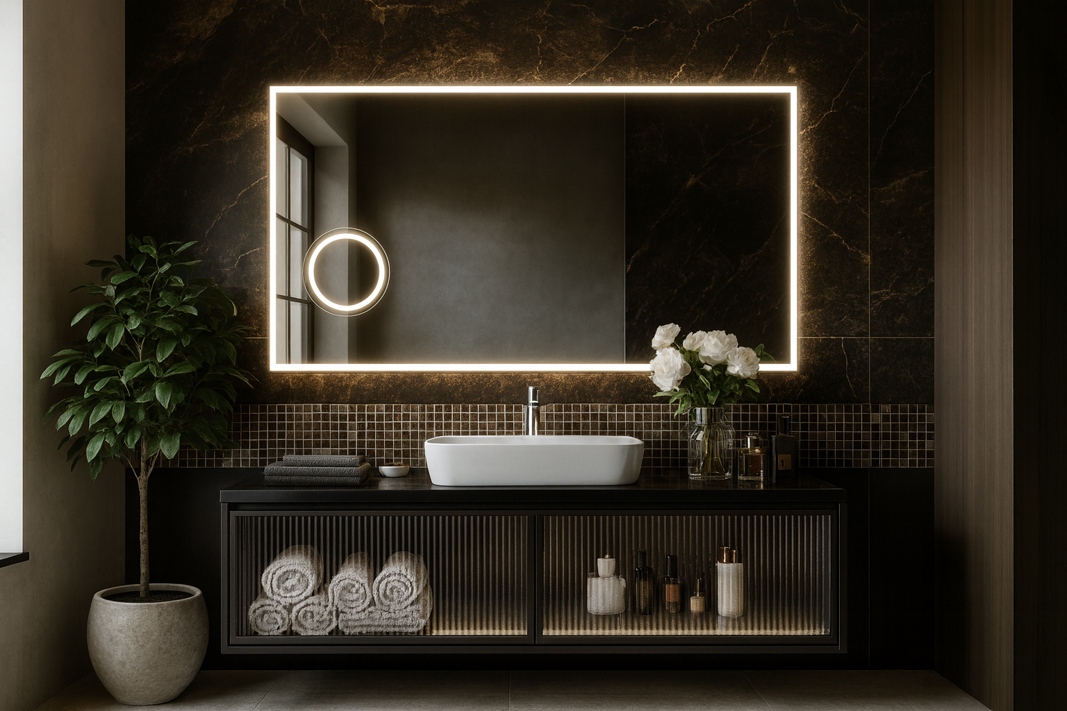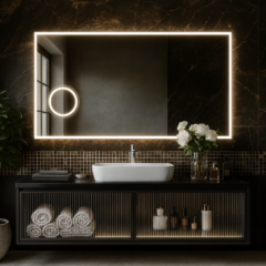 Współczesna klasyczna forma sprawia, że Twoja łazienka wygląda bardziej innowacyjnie, a światło LED wybijające się zza piaskowanej części szkła tworzy urokliwą atmosferę.