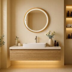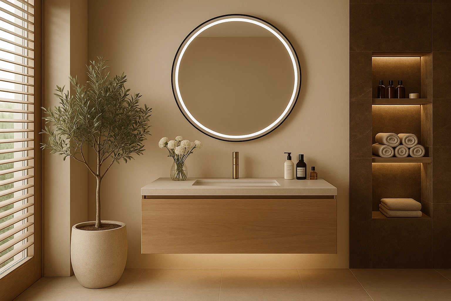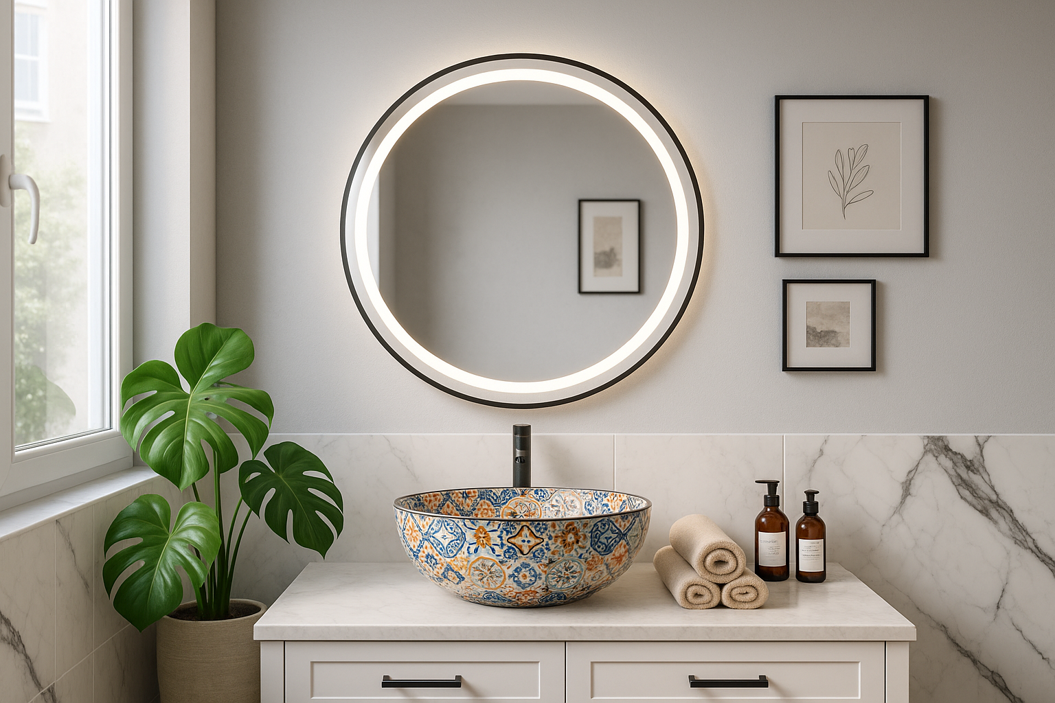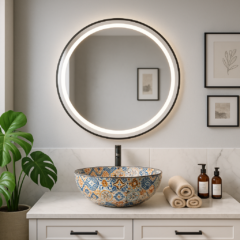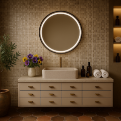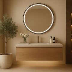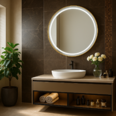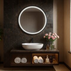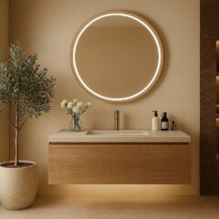 Dodaj swojej łazience wyjątkowego charakteru dzięki okrągłemu lustru z podświetleniem LED, które łączy minimalistyczny design z funkcjonalnością klasy deluxe. Subtelna rama podkreśla nowoczesny styl wnętrza, a podświetlenie tworzy elegancką aurę i zapewnia idealne warunki do codziennej pielęgnacji.