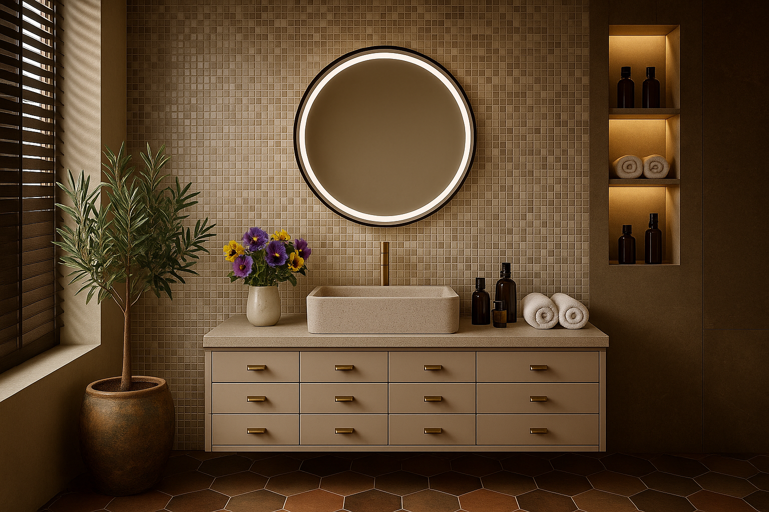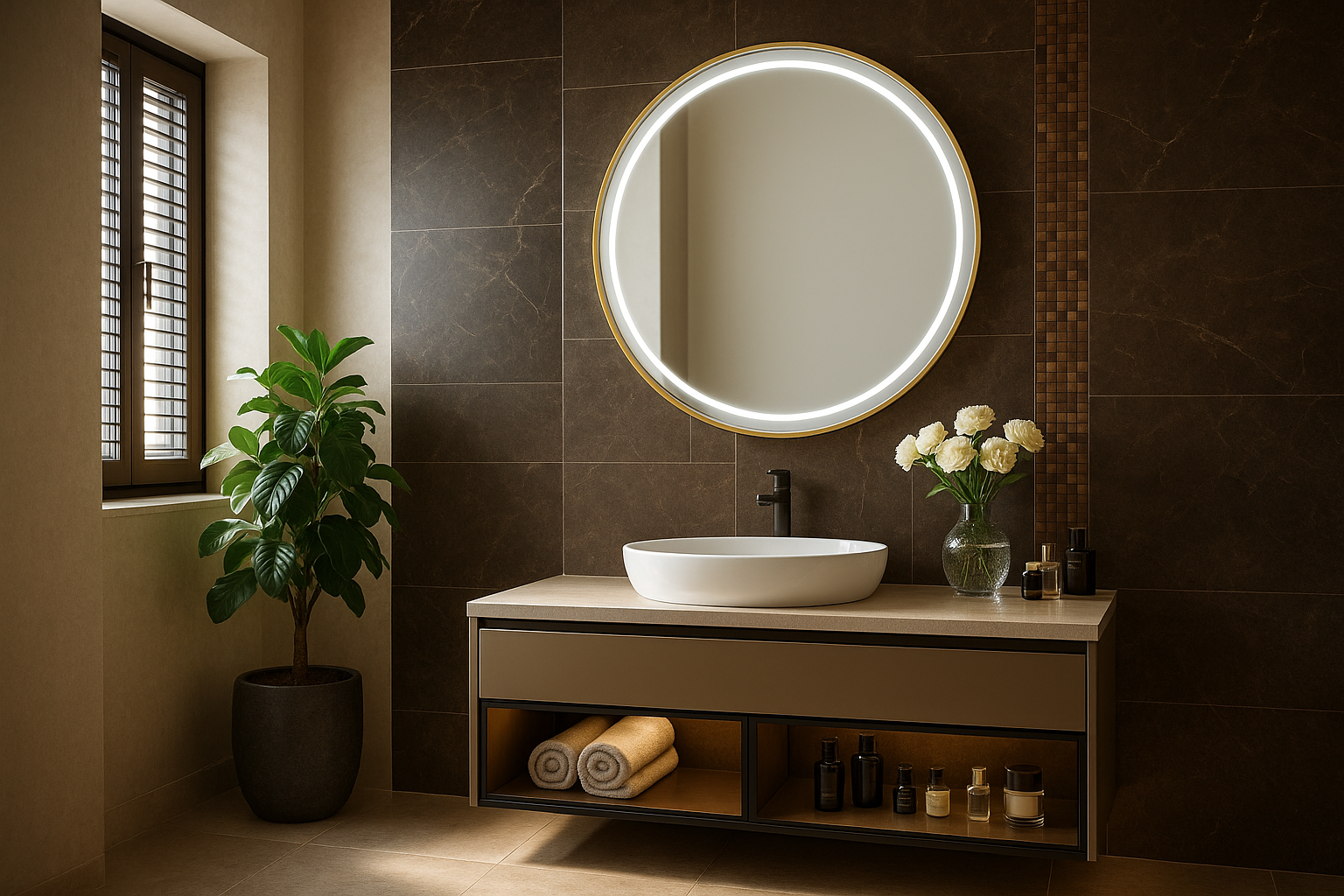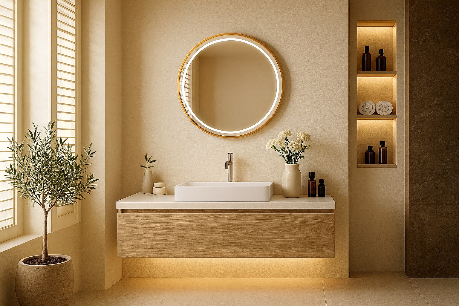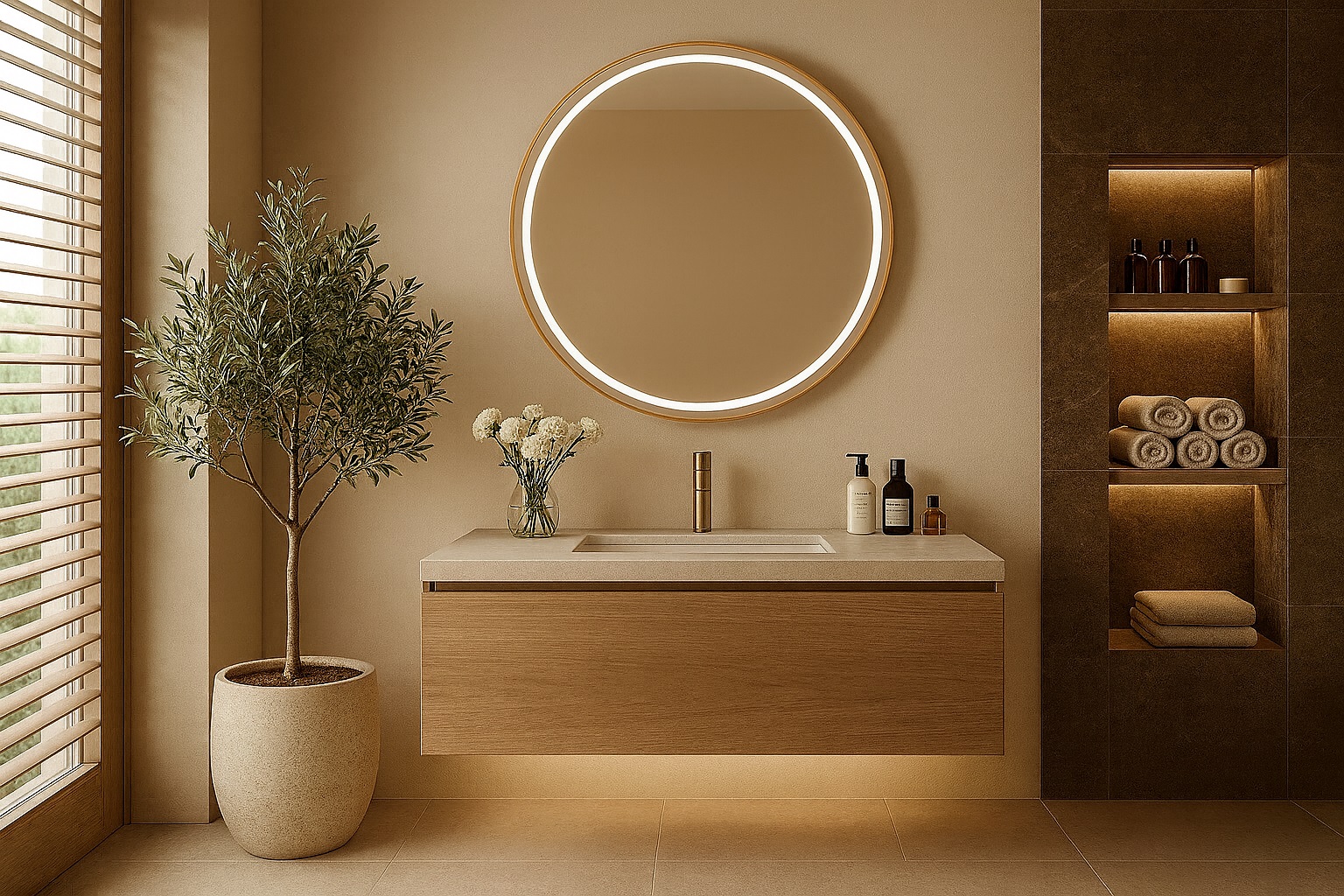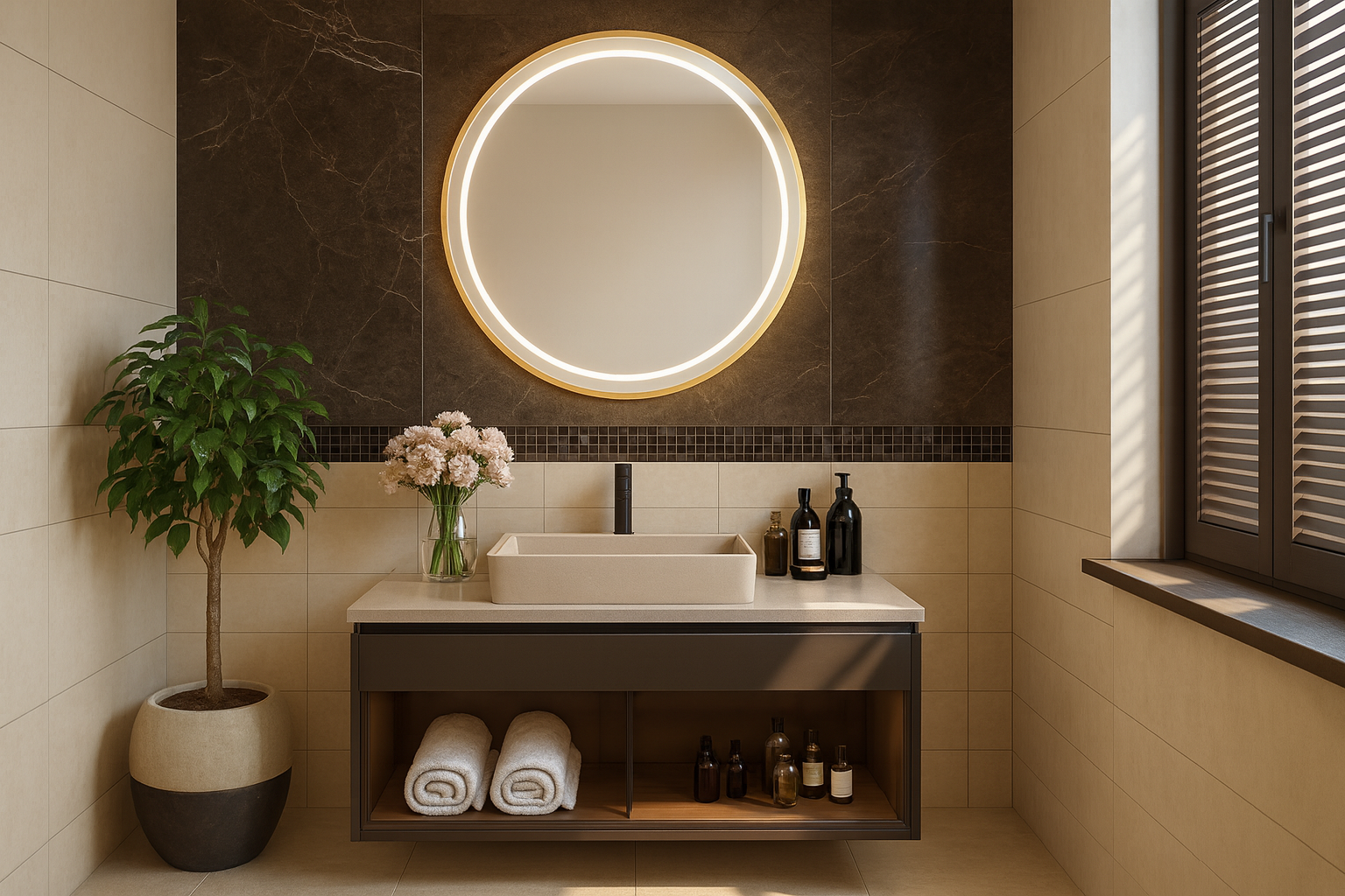 Lustro doskonale wpisuje się w aranżacje nowoczesne, loftowe i hotelowe, stając się nie tylko praktycznym elementem wyposażenia, ale również wyrazistą dekoracją ściany. Delikatna poświata LED buduje przyjemny, relaksujący klimat — idealny zarówno na poranki, jak i wieczorny rytuał spa.