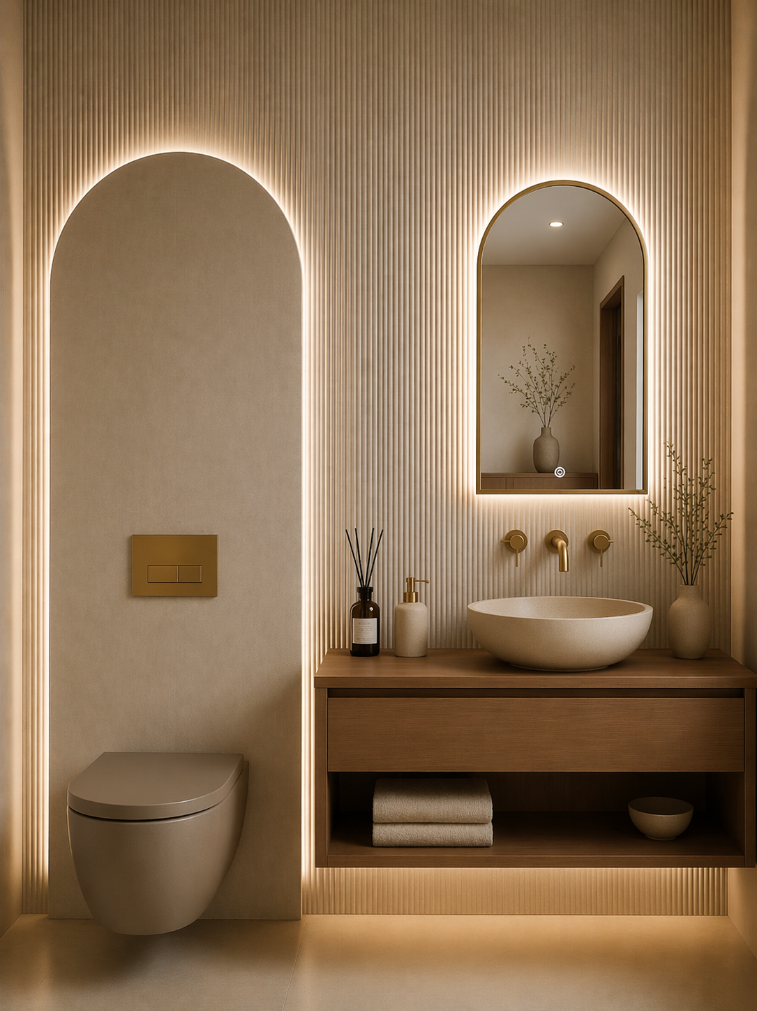 Lustro można zamontować pionowo łukiem w górę lub w dół, aby dopasować się do Twojej przestrzeni.