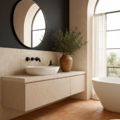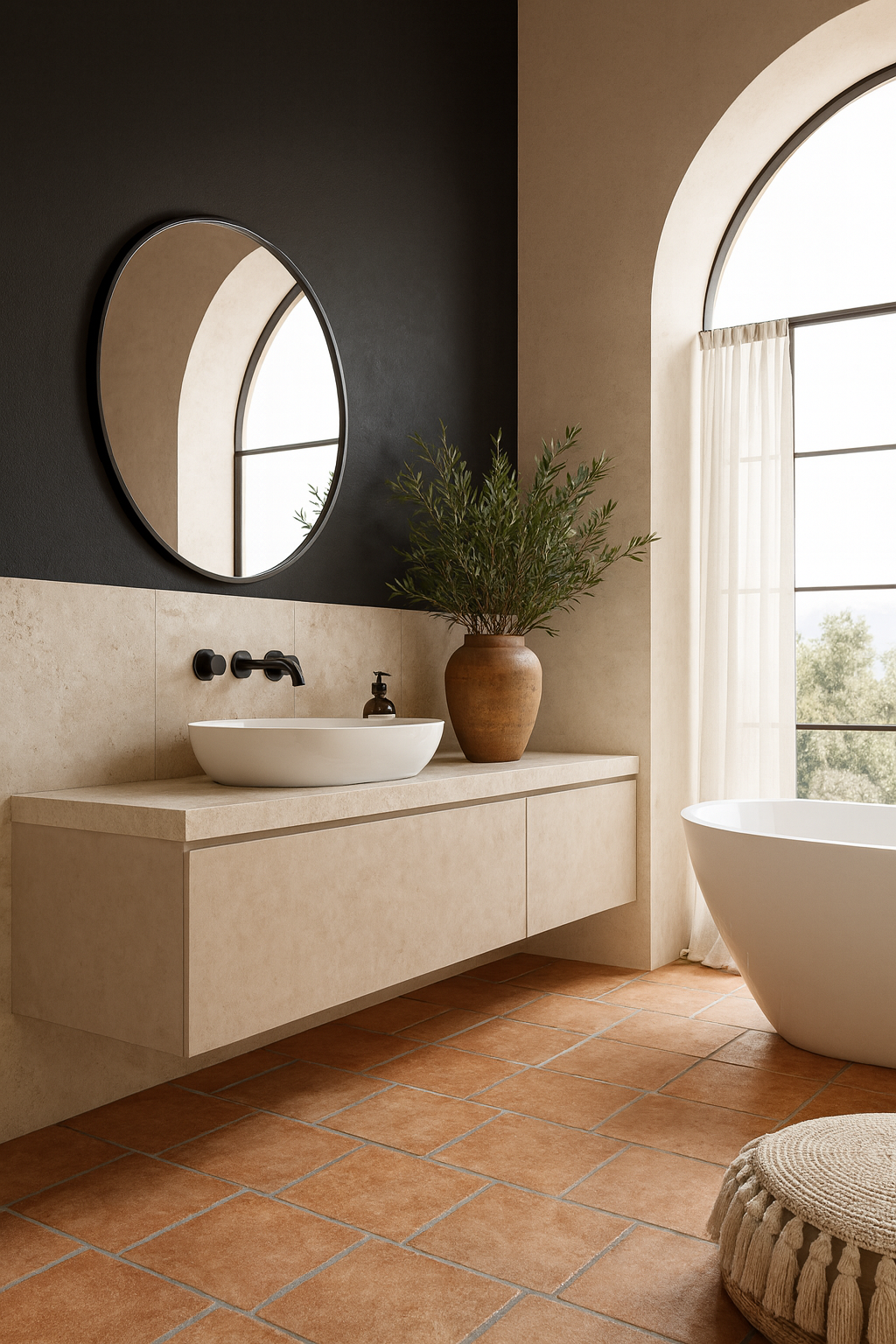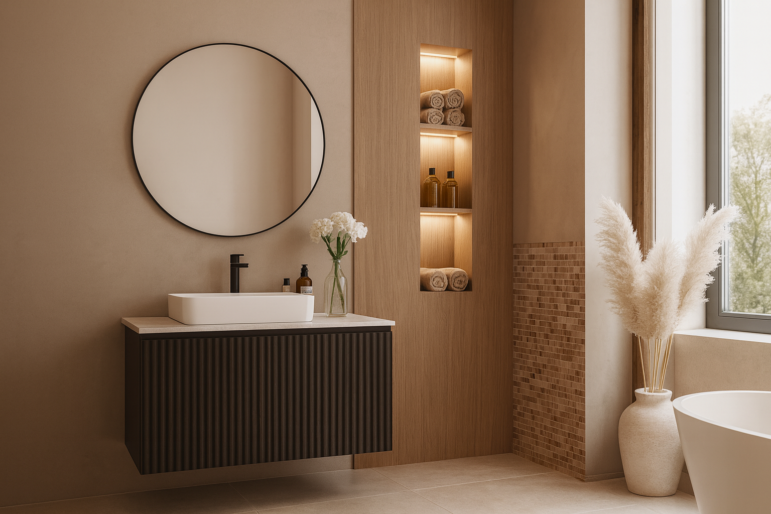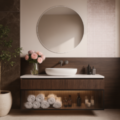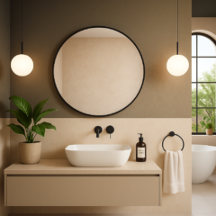 Niepiaskowane, okrągłe lustro wnosi nowoczesny styl dzięki cienkiej aluminiowej ramie, która uzupełnia różne kształty i style mebli.