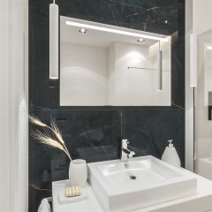Czysta, geometryczna linia sprawia, że lustro doskonale odnajdzie się zarówno w nowoczesnych, jak i ponadczasowych aranżacjach łazienek.